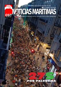 NOTICIAS MARÍTIMAS Número 112 A todos y todas las trabajadoras de la Mar 03. BARLOVENTO: CGT llama a manifestarse el próximo 26 de octubre en defensa de las pensiones. 06. SALVAMENTO MARÍTIMO: 40 horas de rescates en alta mar sin descanso; no podemos más 10. NAVAL: Frente a la ofensiva patronal, hay que endurecer la lucha por un convenio digno. 12. LABORAL: las Horas extras que no se pagan 16. MARINA MERCANTE: Las futuras terminales de cruceros del Puerto de València se mantienen paralizadas por el choque entre Baleària y MSC. 18. MARINA MERCANTE: El barco de Naviera Armas que encalló en Tarfaya (Marruecos) en 2008, desmantelado tras 16 años. 20. MARINA MERCANTE: Noticias Breves 22. LIBRO DEL MES: Se Busca. 24. TODO POR HACER: Bulos racistas para extender el odio. DESCARGA:AQUÍ