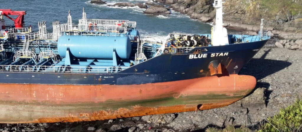 El quimiquero Blue Star encalló el 22 de noviembre de 2019 en las rocas de Punta Miranda, en el municipio de Ares (La Coruña), donde permaneció 17 días, después de dos intentos fallidos de remolcarlo. Ahora, cinco años después, se publica la investigación sobre lo que ocurrió en este accidente, que se hizo muy famoso durante aquellos días. El informe que ha publicado la Comisión de Investigación de Accidentes e Incidentes Marítimos (Ciaim) apunta a cuestiones como la «descoordinación» entre la tripulación, pérdida de aceite y mal estado del buque entre las causas de lo sucedido. También se remarca la «imposibilidad para contar con asistencia inmediata de remolcadores en la zona de fondeo». El hecho es que Salvamento Marítimo «movilizó inmediatamente» un remolcador desde La Coruña y unos minutos después otro desde Ferrol. El quimiquero encalló a las 23:40 horas, pese a que estos buques llegaron solo unos minutos después (23,58 y 23,59 horas), «ninguno de los dos remolcadores tuvo la oportunidad de intentar hacer firme un remolque al Blue Star antes de que este encallase». En sus recomendaciones de seguridad, la Ciaim propone a las Capitanías Marítimas de La Coruña y Ferrol que «valoren establecer un procedimiento para gestionar el fondeadero en situaciones de meteorología muy adversa, disponiendo puntualmente remolcadores en puertos cercanos (Ares o Sada) o con otras medidas de eficacia similar». También emplaza a Puertos de Galicia a que habilite en el puerto de Sada un calado suficiente para que puedan atracar buques de salvamento. El barco, de 128 metros de eslora, sufrió el incidente entre las playas de Barrosa y A Canteira con un incendio en la máquina. Ocurrió cuando salía del fondeadero de Ares para tomar práctico y entrar en La Coruña, pero la avería lo dejó a merced del viento y las olas, en una noche en la que estaba decretada la alerta naranja con olas de cinco metros y vientos de unos 100 kilómetros por hora. El buque procedía de Bilbao y se dirigía a cargar 6.000 toneladas de productos químicos en la terminal de Repsol en la ciudad herculina. Tras su desencallamiento, estuvo en los astilleros ferrolanos de Navantia hasta marzo de 2020, cuando emprendió un viaje de 20 días hasta la ciudad turca de Tuzla para su reparación. Actualmente el buque navega bajo bandera de Malta y se ha cambiado el nombre a Blue Bird. Los detalles del accidente Este organismo investigador, que depende del Ministerio de Transportes, señala como causas inmediatas del encallamiento: pérdida de aceite térmico por una fuga en el tanque de expansión del sistema, «que alcanzó los conductos de exhaustación de los motores, dando lugar a un incendio en el guardacalor que se extendió por la cámara de máquinas», y la descoordinación en la liberación del sistema fijo de extinción de incendios por gas CO2. También alude a la pérdida de propulsión y suministro eléctrico, a causa del disparo del CO2 y mal estado del sistema de emergencia de largado del ancla en el molinete de babor, así como la falta de remolcadores. «Parece que cuando el capitán tomó la decisión de salir del fondeadero por el garreo del ancla ante el empeoramiento de las condiciones meteorológicas, no estaba debidamente informado por el jefe de máquinas del alcance de la avería en el sistema de aceite térmico y del riesgo de incendio que podía acarrear el uso de ese sistema. No hubo una comunicación eficaz entre el capitán y el jefe de máquinas. El capitán no fue diligente al no comunicar inmediatamente a las autoridades marítimas los problemas que estaban experimentando con el aceite térmico», relatan las conclusiones de la investigación. Igualmente, «el capitán no fue diligente al no comunicar inmediatamente a las autoridades marítimas los problemas que estaban experimentando con el aceite térmico» y «el jefe de máquinas demostró no conocer debidamente el sistema de aceite térmico». FUENTE:AQUÍ