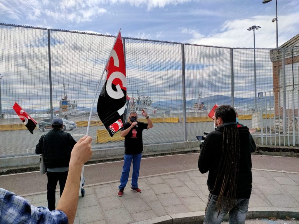 CGT se manifiesta hoy en Santander para exigir la readmisión de sus compañeros de RUSA S.L., y realiza un llamamiento a la sociedad cántabra y a toda la clase obrera para que apoye las movilizaciones y acciones que se realicen en apoyo a estos trabajadores, recordando que el servicio que prestan en el puerto de esta ciudad es esencial para el día a día en la misma.